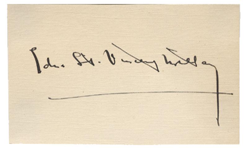 Edna St. Vincent Millay (1892 – 1950). American lyrical poet and playwright and the first woman to receive the Pulitzer Prize for Poetry. Signed card. 4 1/4" x 2 5/8". "Edna St. Vincent Millay". Choice fresh condition.