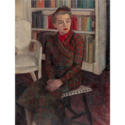 Edna Wolff (Henner) Maschgan (American, 1907-2001), "Woman in a Library", c. 1930; oil/canvas, 40" x 30", unsigned, estate stamp. This is a very rare early work by the artist.