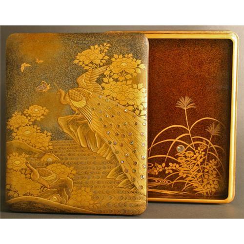 Edo Gold Lacquered Box,Peacocks and Butterflies#2315825