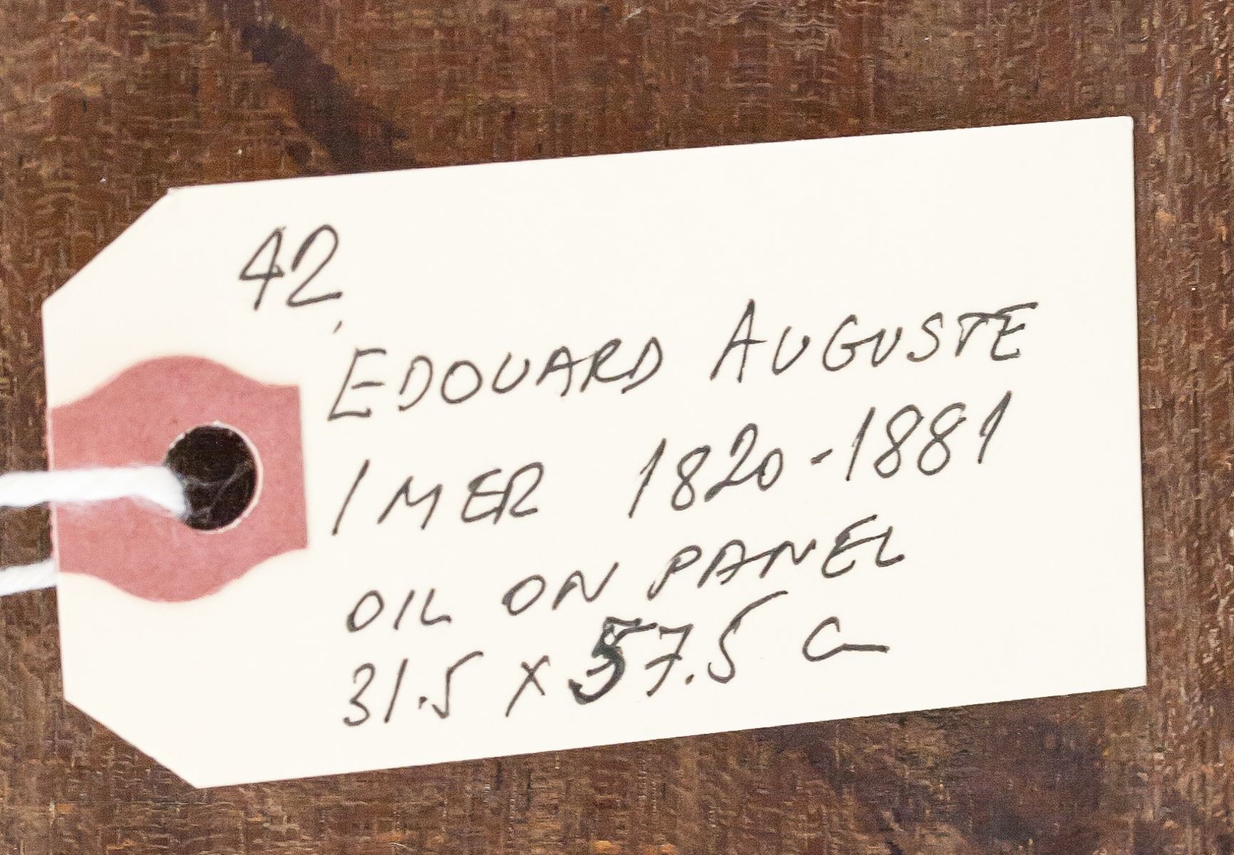 Oil on panel, framed. Featuring river landscape. Signed "E. iMER" in the bottom left corner. Label attached to verso reads "42 EDOUARD AUGUSTE IMER 1820-1881 OIL ON PANEL 31.5 x 57.5 cm". Edouard Auguste Imer (1820-1881, French). 31.5 x 57.5 cm (12.5 x 22.5 in), Frame: 45 x 71 cm (17.75 x 28 in). Provenance: Dorotheum, Vienna, October 25, 2002, Lot 210