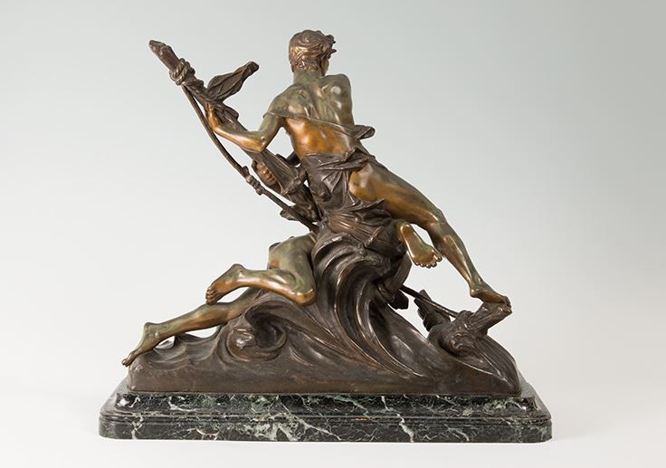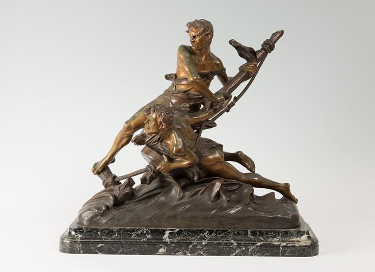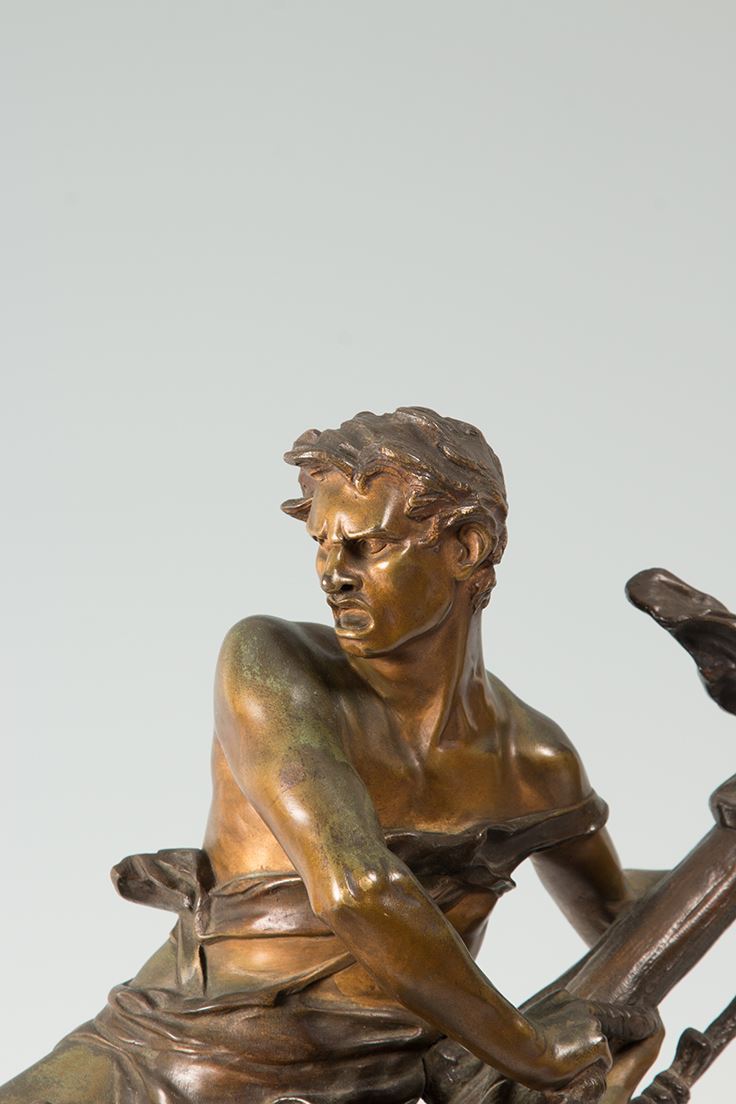 Edouard Drouot (1859-1945). Facing the Storm. 17" x 18 ½" x 8" bronze on marble base. Inscribed: E. Drouot.