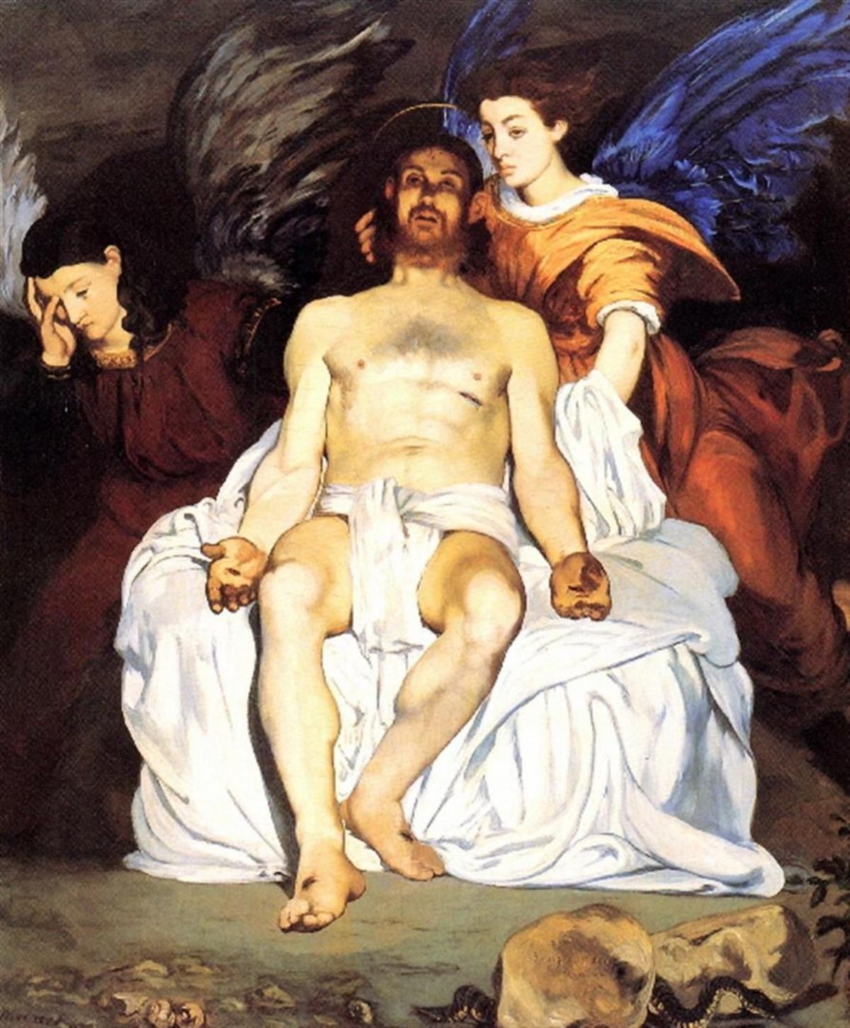 Artist: Édouard Manet - Title: The Death of Christ with Angels - Medium: Fine Art Giclee on Canvass - Image Size: Approximately 20 inches x 16.75 inches - Unframed on Unstretched Canvas - Biography :Édouard Manet (23 January 1832 - 30 April 1883) was a French modernist painter. He was one of the first 19th-century artists to paint modern life, and a pivotal figure in the transition from Realism to Impressionism. Born into an upper-class household with strong political connections, Manet rejected the future originally envisioned for him, and became engrossed in the world of painting. His early masterworks, The Luncheon on the Grass (Le déjeuner sur l'herbe) and Olympia, both 1863, caused great controversy and served as rallying points for the young painters who would create Impressionism. Today, these are considered watershed paintings that mark the start of modern art. The last 20 years of Manet's life saw him form bonds with other great artists of the time, and develop his own style that would be heralded as innovative and serve as a major influence for future painters.