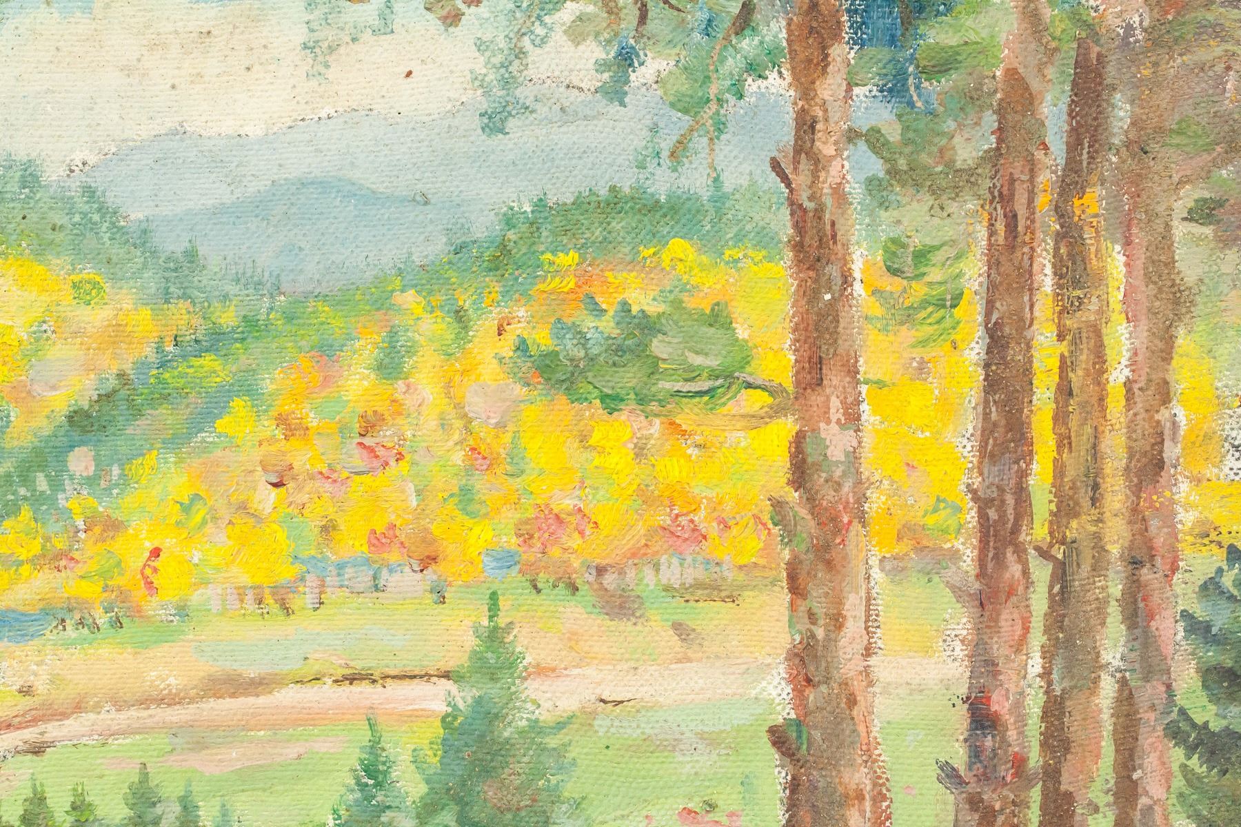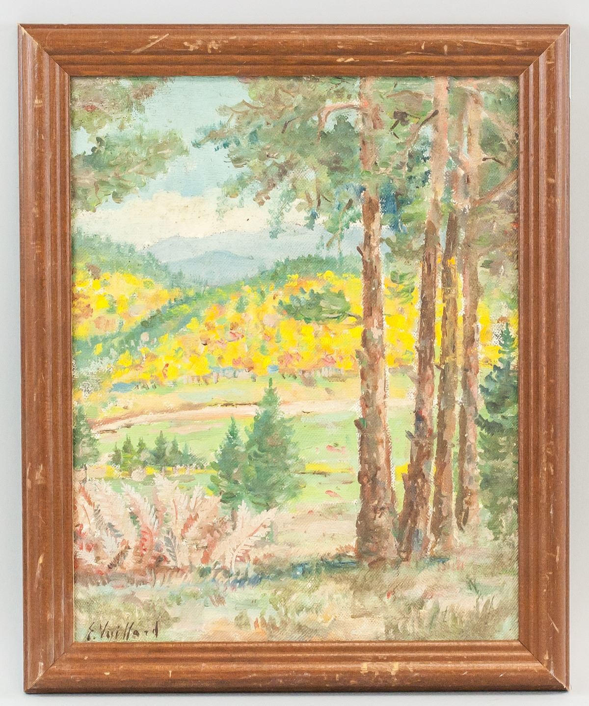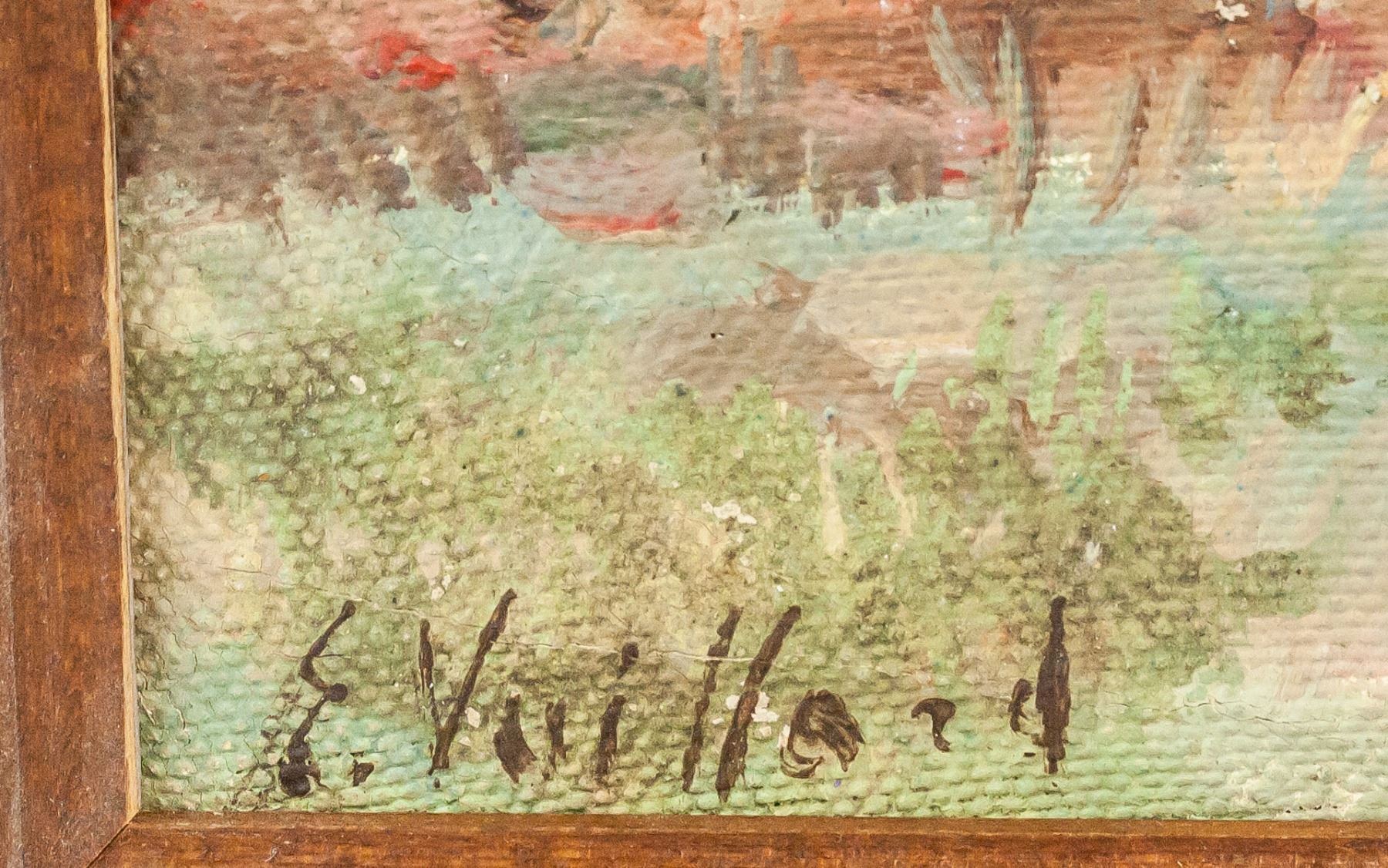 Oil on canvas, framed. Featuring landscape autumnal landscape scene. Signed "E. Vuillard" in the bottom left corner. Attributed to Edouard Vuillard (1868-1940, French). 25 x 28 cm (13.75 x 11 in), Frame: 42 x 36 cm (16.5 x 14 in). Provenance: This lot carries limited provenance from a Southern Ontario estate