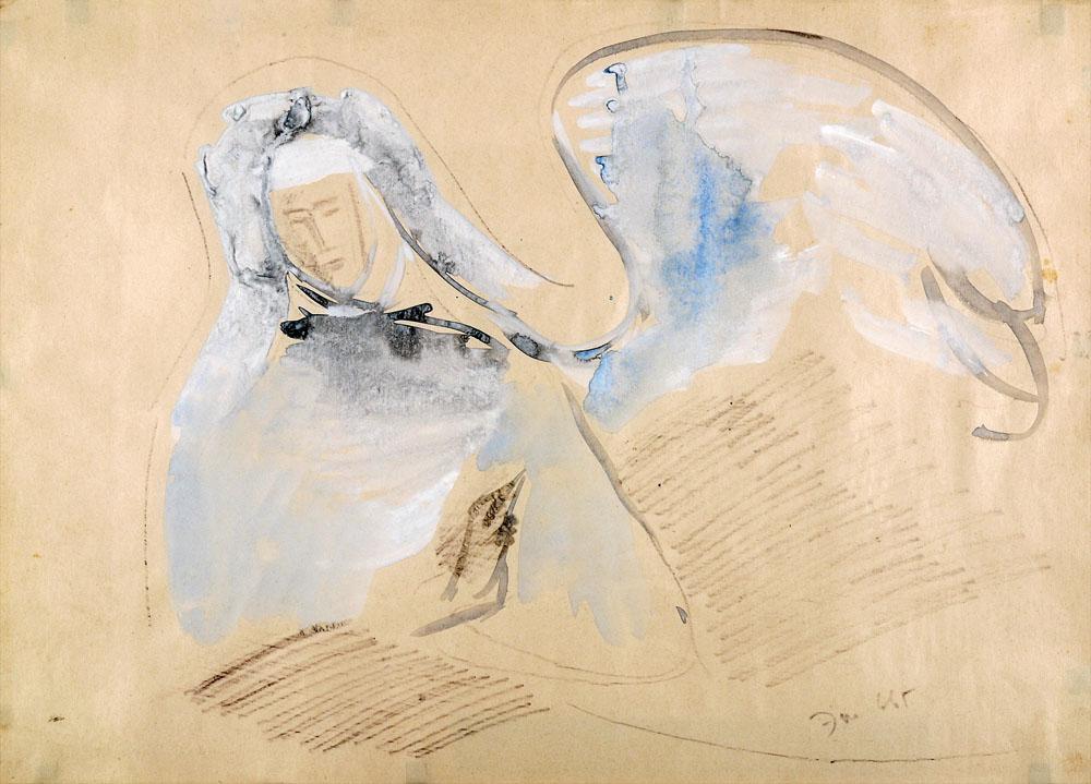 Eduard Steinberg, , B. 1937, Angelic Woman, Watercolor, 42x59cm, Signed., , , Michael Grobman's collection., ,