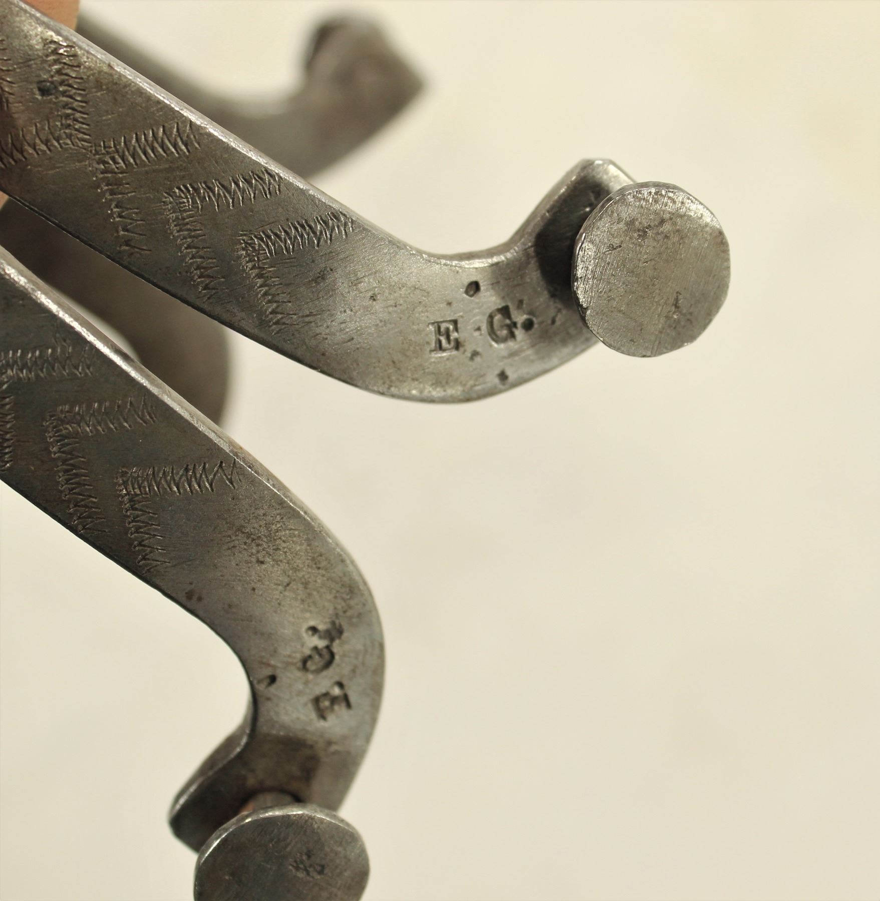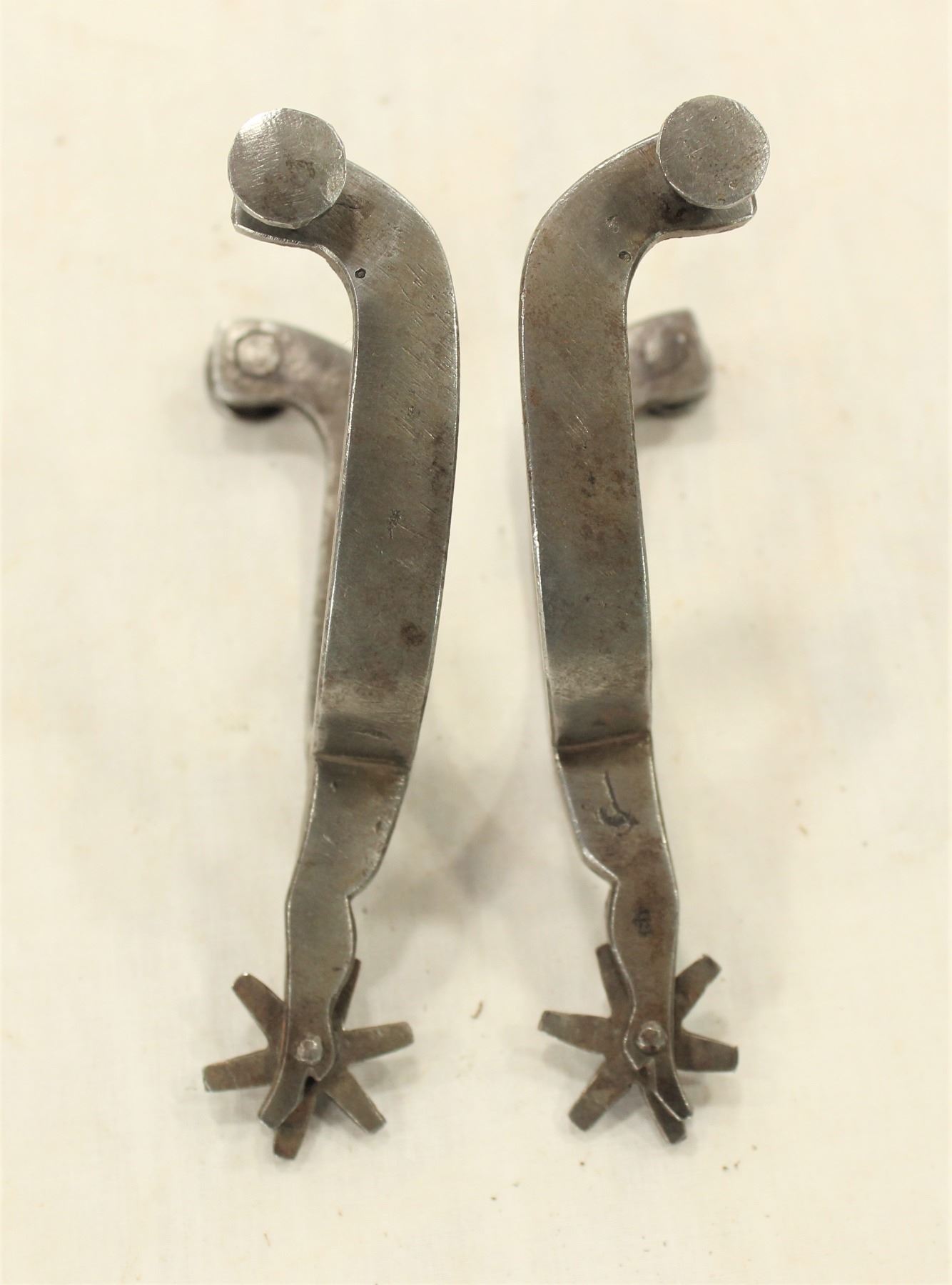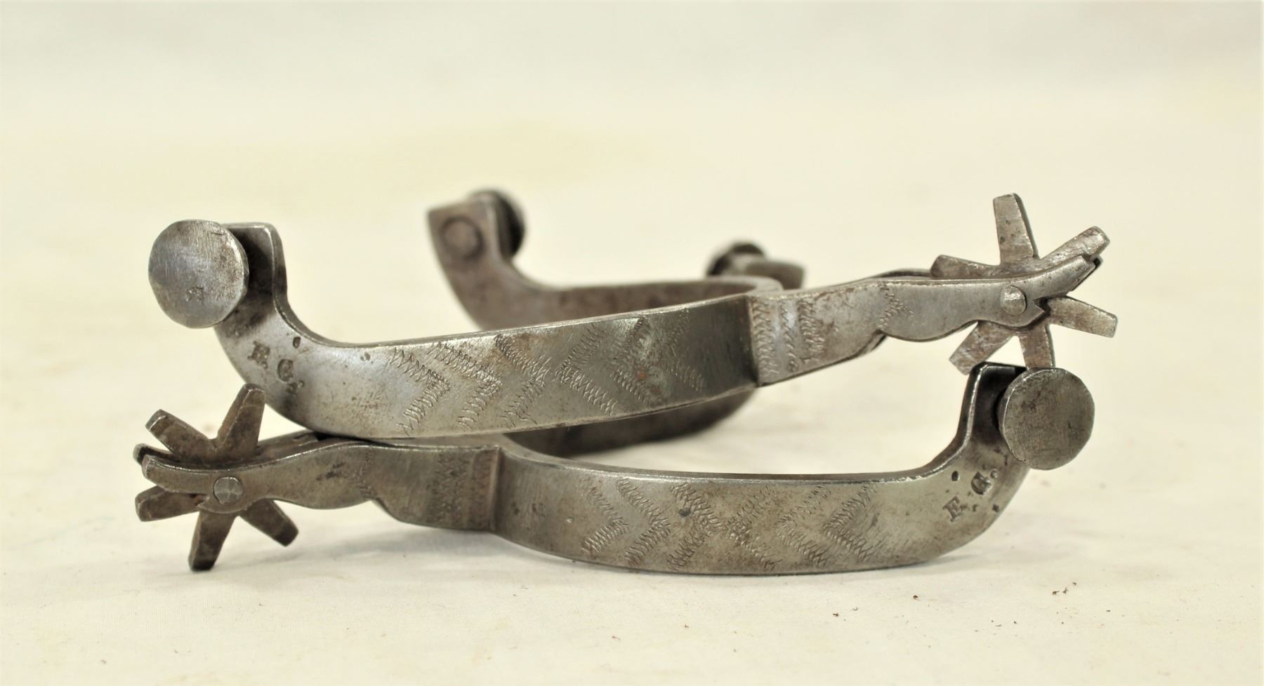 Seldom seen ladies size, iron lady leg spurs with chased iron heelbands.