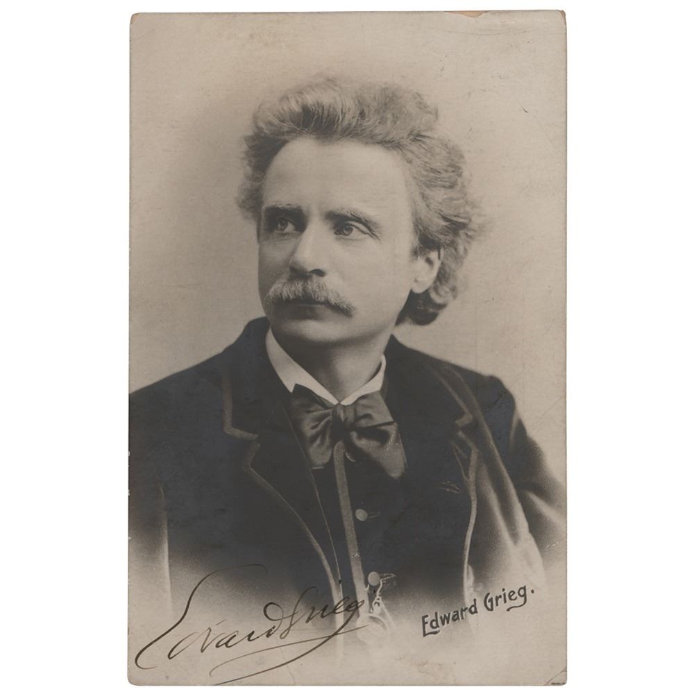 Uncommon vintage matte-finish 3.5 x 5.5 photo of the composer, nicely signed in ink, "Edvard Greig." In fine condition.