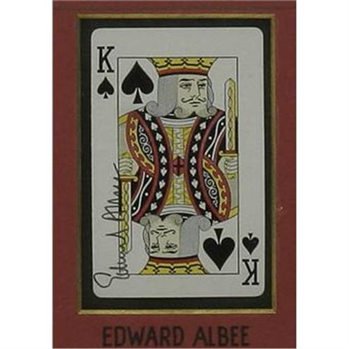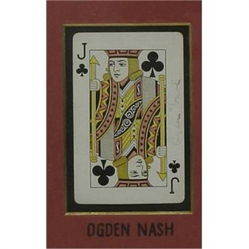<B>Edward Albee, Thornton Wilder Signatures in Literary Autograph Collection.</B></I> Fifteen playing cards, each signed by a notable literary figure of the 1930s, are arranged face up in "hands," and framed accordingly to an overall size of 20.0" x 19.0". Notables included are: Edward Albee, Frederick Lewis Allen, Howard Spring, Robert Benchley, Carl Van Vechten, Ogden Nash, Vicki Baum, Meredith Nicholson, Bernard De Voto, Thornton Wilder, Don Marquis, Louis Bromfield, Michael Arlen, Sylvia Thompson, and Sherwood Anderson. An exceptional group in a very creative display. Fine condition; some fading.