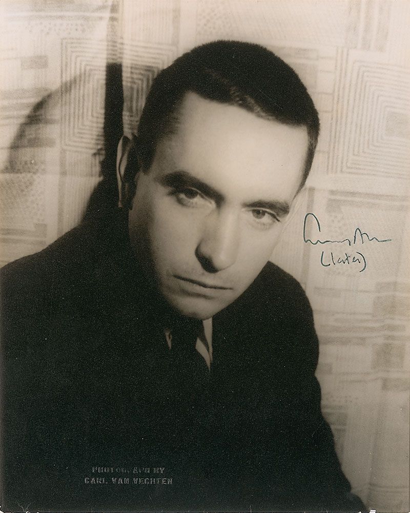 Vintage matte-finish 8 x 10 photo of a younger Albee, signed in black ink, “Edward Albee (later).” In fine condition, with a couple slight edge chips.