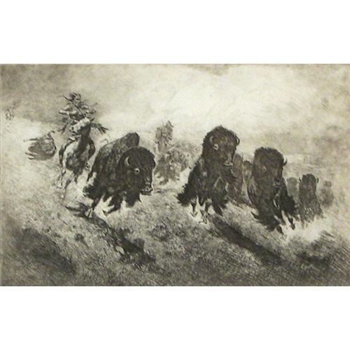 Edward Borein (1872-1945) Drypoint Etching, "Robes & Meat", image size 6" x 9 1/4", unsigned