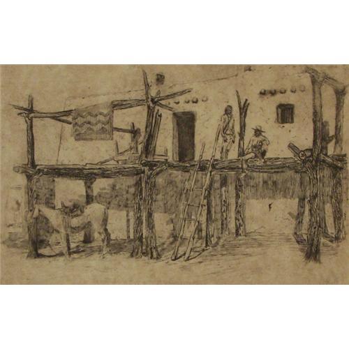 Edward Borein (1872-1945) Drypoint Etching, "The Ramada", image size 6 3/4" x 10 7/8", unsigned