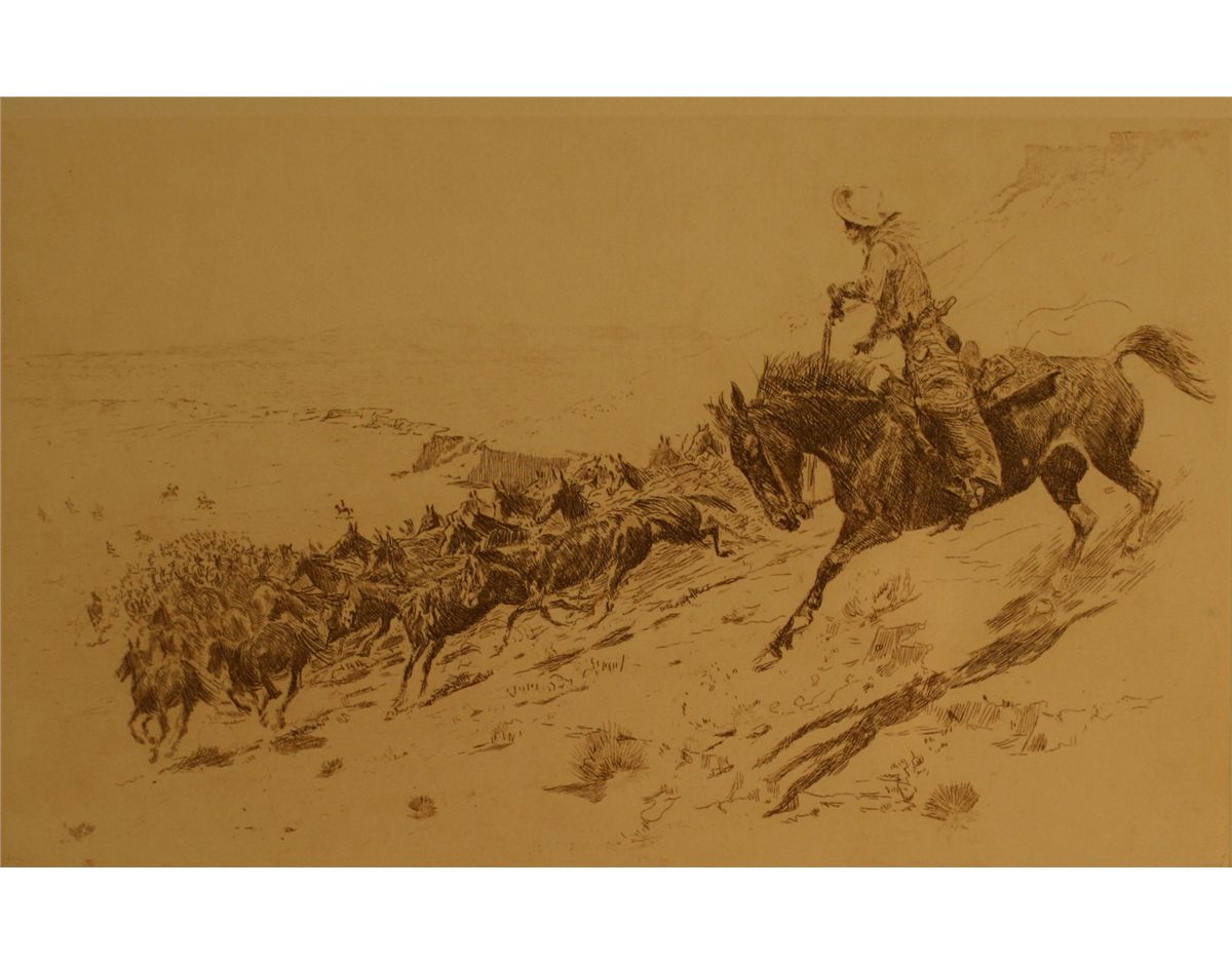Edward Borein, Etching and Drypoint, "Running Wild  Horses", 6-3/4" x 10-7/8", -157110-