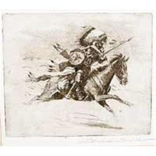 Edward Borein, Etching, "Charging Hawks", 4 1/2" x 5 1/4", Signed lower right. Provenance: Iron Eyes Cody Estate.