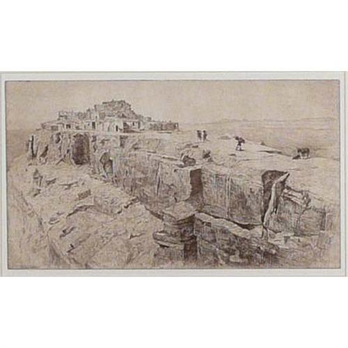 7695 Edward Borein (1872-1945) Etching Unsigned 7 3/4" x 13 3/4"
