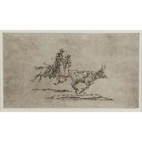 7694 Edward Borein (1872-1945) Etching Unsigned 4 3/4" x 8 3/4"