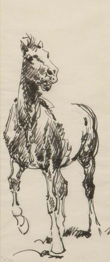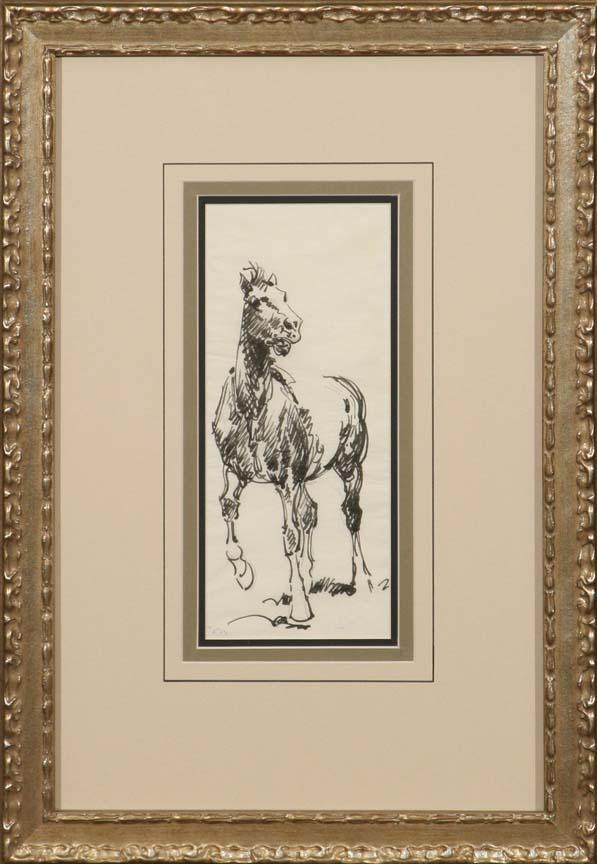 Edward Borein (1872-1945). #132 Trotting. 9 ½" x 4" ink on paper. Unsigned. (est $700-1,000). Provenance: Ex-Harmsen Collection, Denver, Colorado. For condition reports please visit: www.auctioninsantafe.com/cr2011.pdf