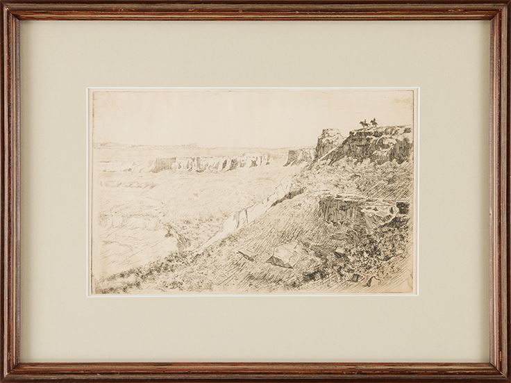 Edward Borein (1872-1945). Wild Horse Hunters. 7 ¼" x 11 ¼" etching. Verso: Titled and signed. Purchased from Harold Davidson, Santa Barbara, CA.