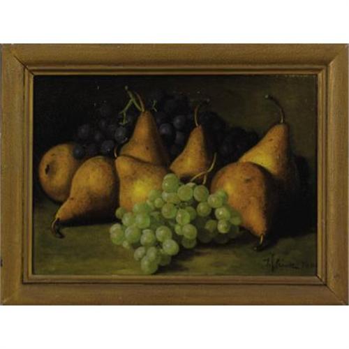 <B>EDWARD CHALMERS LEAVITT</B></I> (American 1842-1904)<B></B></I><BR><I>Still Life with Grapes and Yellow Pears</B></I>, 1884<BR>Oil on canvas<BR>10 x 14 inches (25.4 x 35.6 cm)<BR>Signed lower right <I>E. Leavitt 1884</B></I><BR> <B>Condition Report:</B> <BR><BR><b>Shipping:</b> Requires 3rd Party Shipping (<a target="_blank" href="http://www.heritageauctions.com/common/shipping.php">view shipping information</a>)