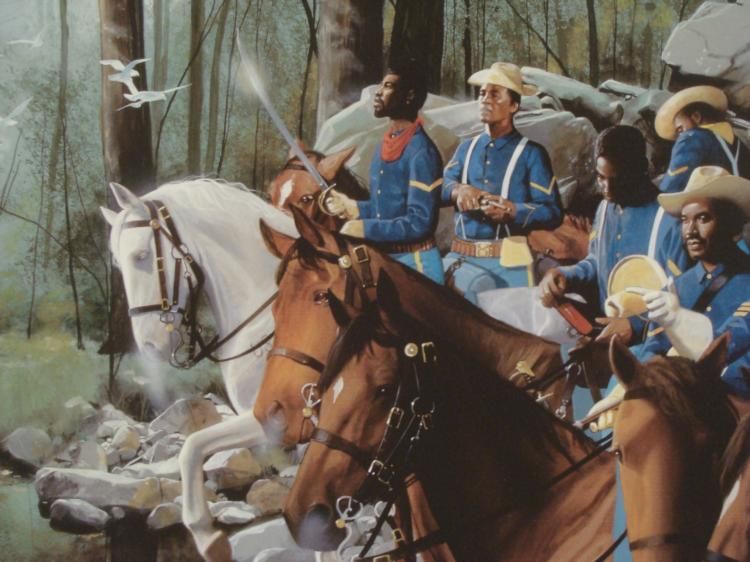 This print shows a stunning scene almost straight out of American history: an all African American Cavalry.Artist: Edward Clay Wright Title: Quiet Before the Storm * Image Size: 19 x 26 inches. Paper Size: 24 x 34 inches.