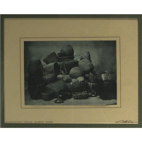 PHOTOLITHOGRAPH: Edward Sheriff Curtis (1868-1952), title: Washington Indian Basket Work, signed in image and on mat: Curtis. 4.75 x 6.5'' image. 14'' x 15'' Framed