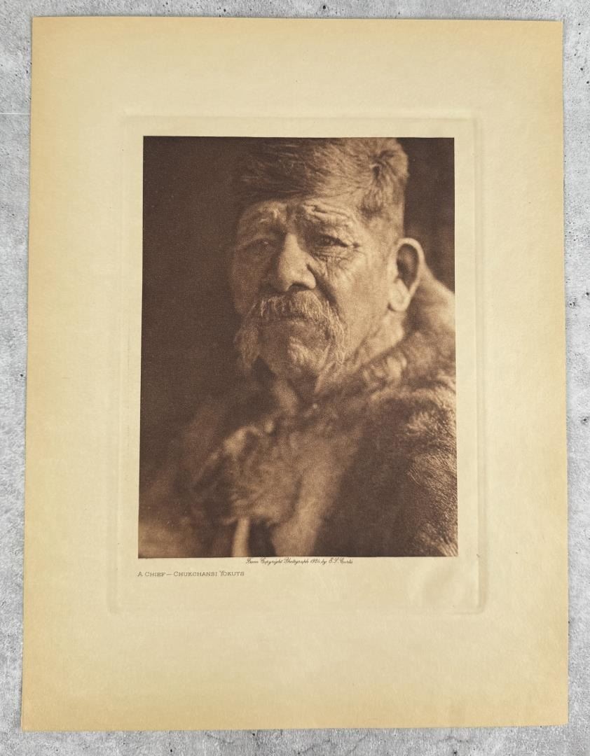 A Chief Chukchansi Yokuts. Original 1924 photogravure from Edward Curtis The North American Indian. 9 1/2" by 12 1/2".