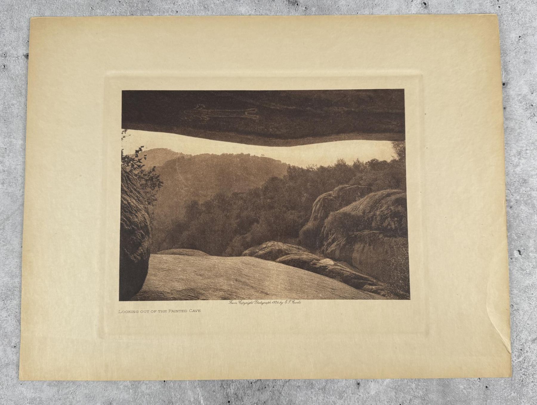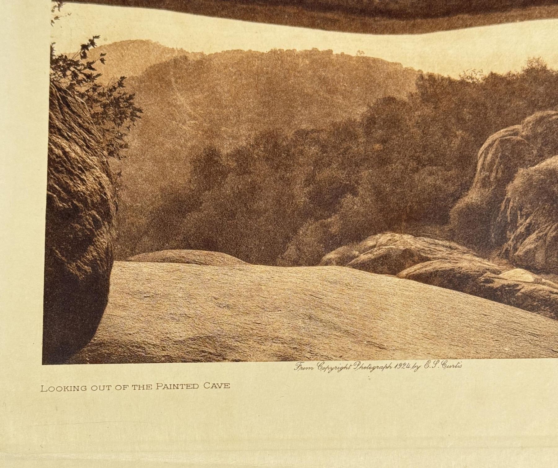 Looking out of the Painted Cave. Original 1924 photogravure from Edward Curtis The North American Indian. 9 1/2" by 12 1/2".