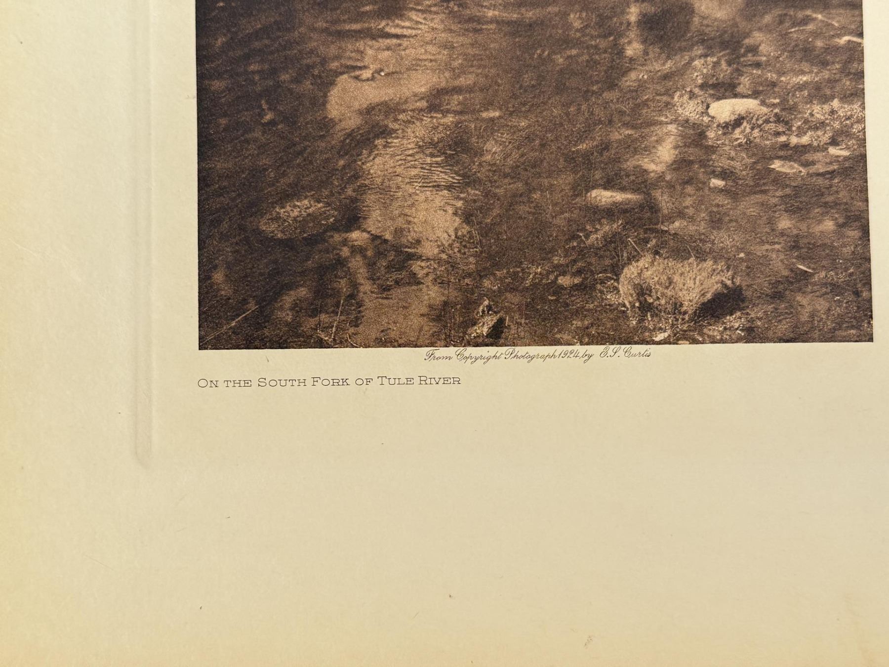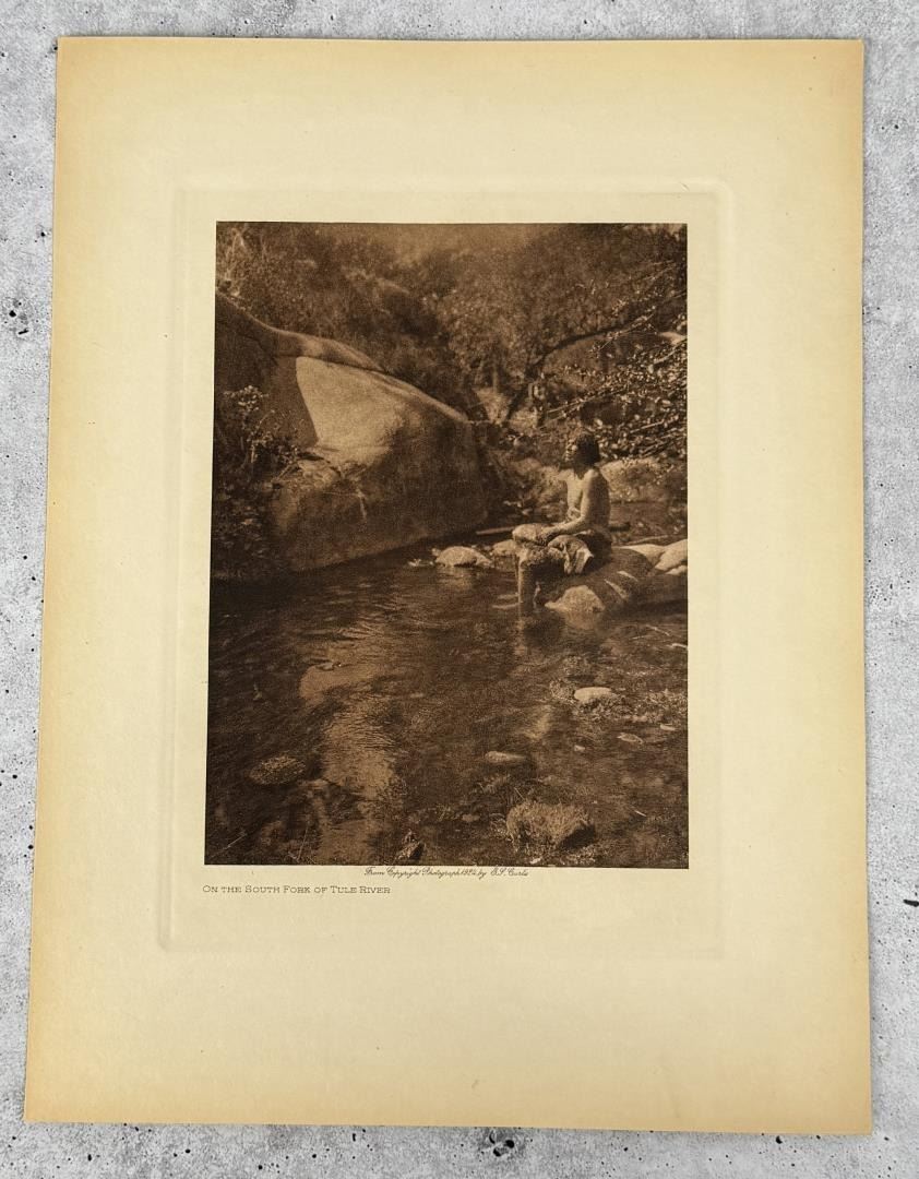 On the South Fork of the Tule. Original 1924 photogravure from Edward Curtis The North American Indian. 9 1/2" by 12 1/2".
