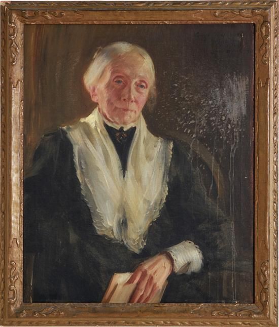 Edward Dufner (New York, 1872-1957) PORTRAIT OF MRS CHARLES S. COLLINS oil on canvas, framed, signed: upper right H29in W25in Provenance: Property deaccessioned by the Gibbes Museum of Art, Charleston, South Carolina.