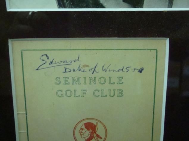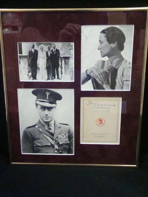 Nice framed item with three photos of the Royal Family and signed golf club brochure.
