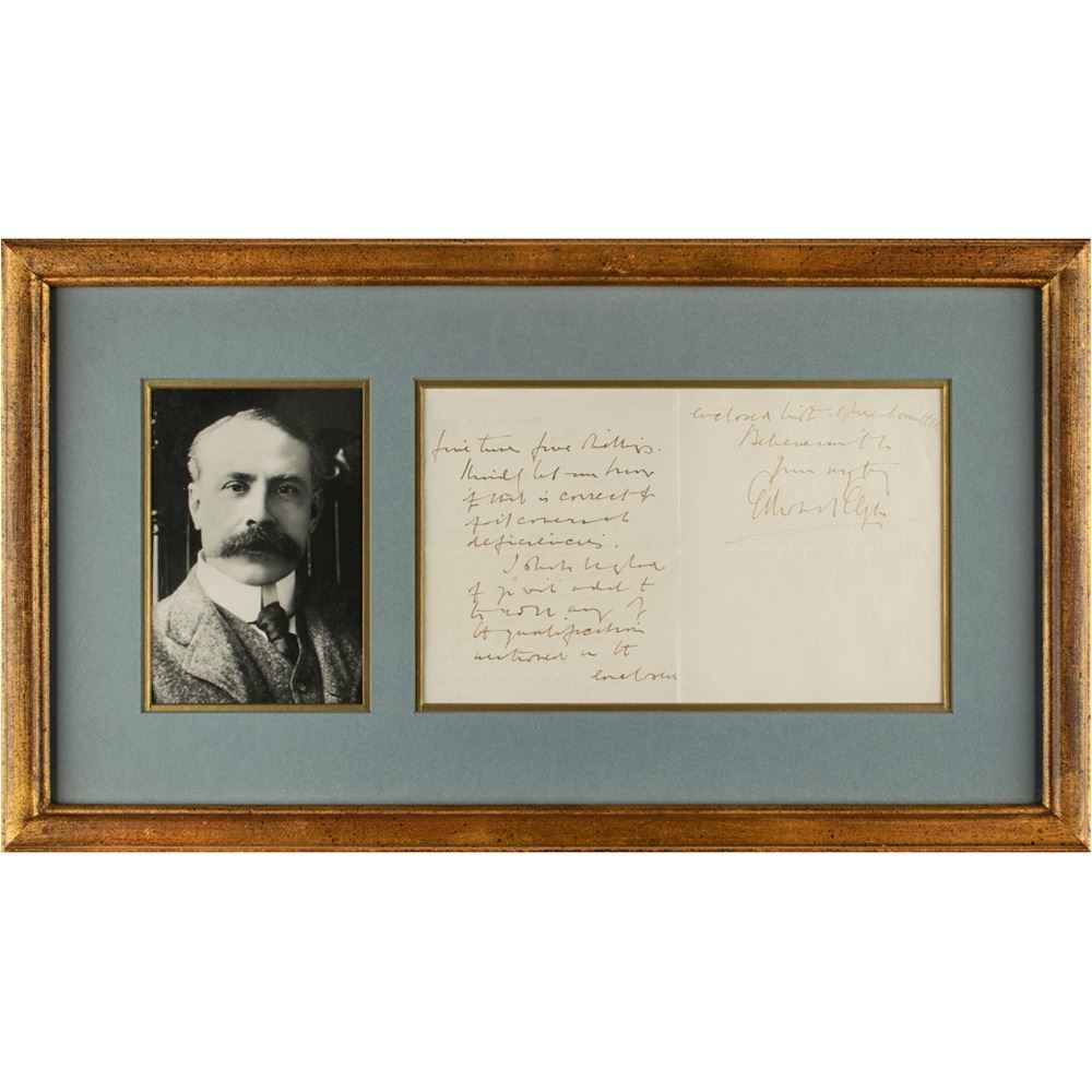 ALS, three pages on two adjoining sheets, 5.25 x 6.5, personal letterhead, December 25, 1921. Letter to "Dr. Phillips," apologizing for an oversight concerning a payment and enclosing the correct amount. Double-matted and framed alongside a portrait to an overall size of 22.5 x 12.5, with glass on both sides and a window in the back for viewing the opposite side. In fine condition.