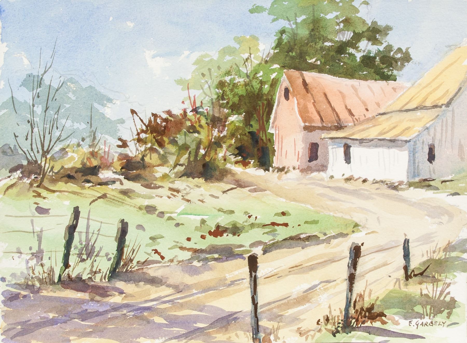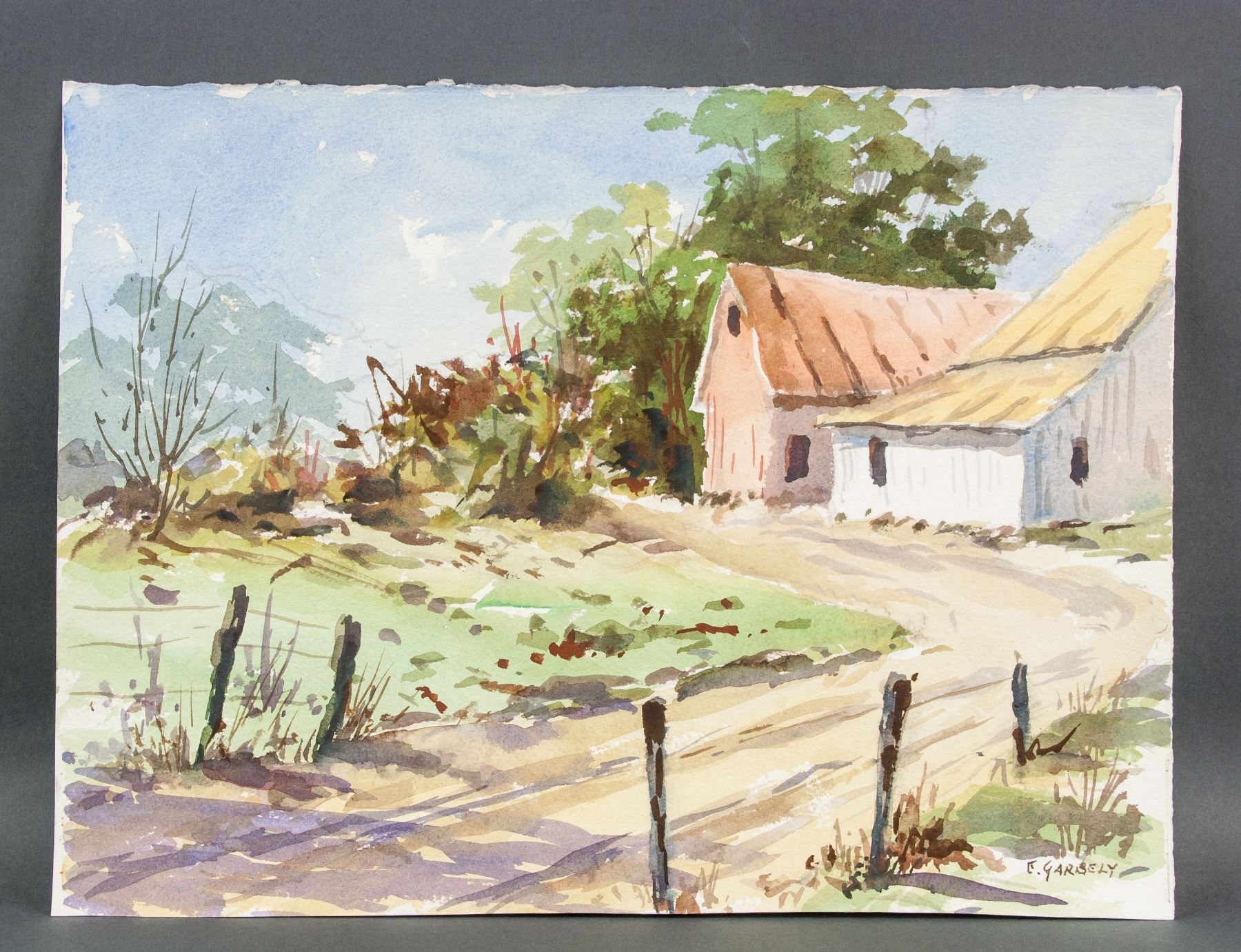 Watercolor on paper, featuring landscape painting, signed E. Garbely (1908-1999, American) on the lower right corner, 11.25 x 15 inches (28.6 x 38.1 inches). PROVENANCE: Private American collection (Ohio, United States)