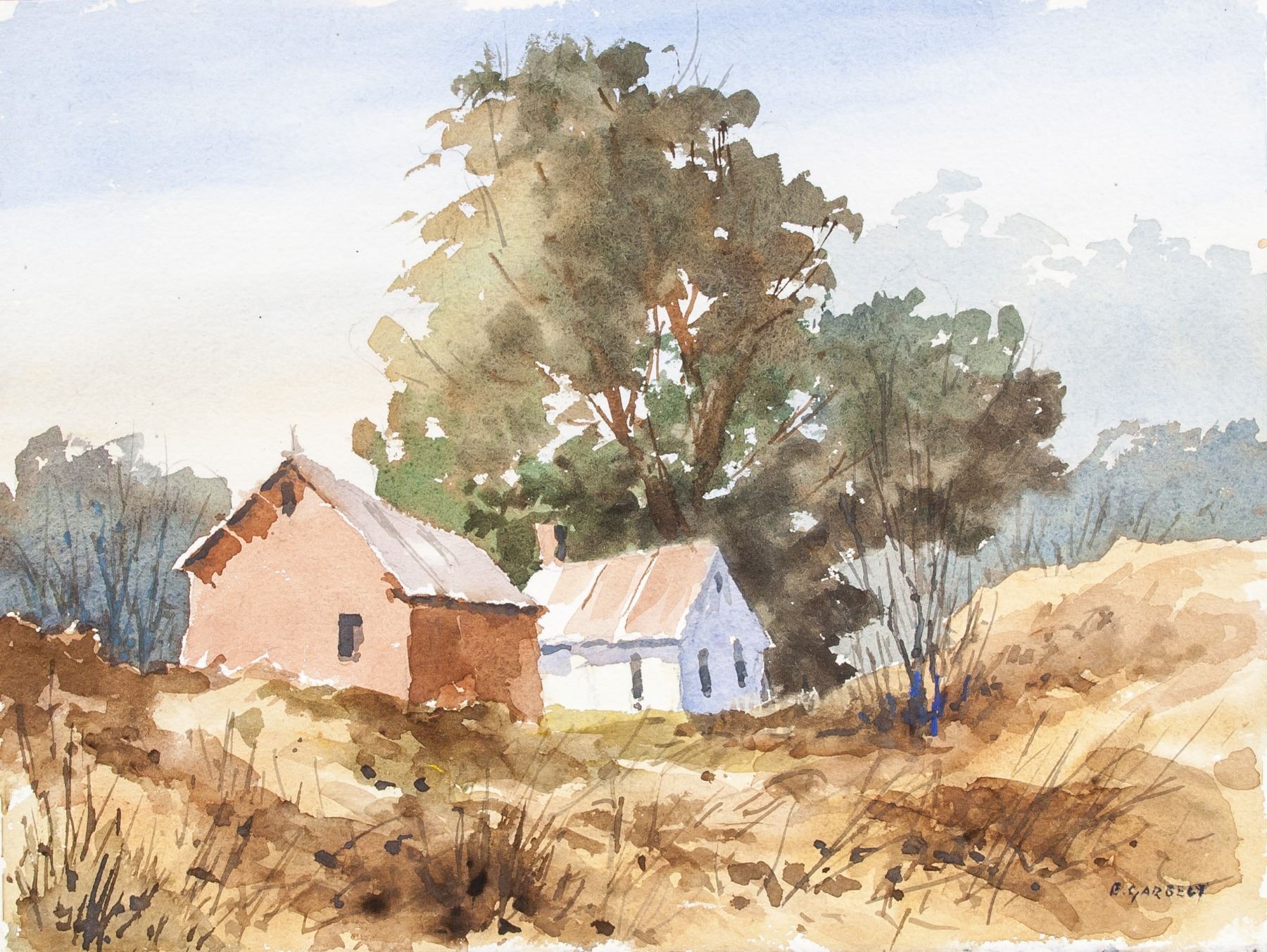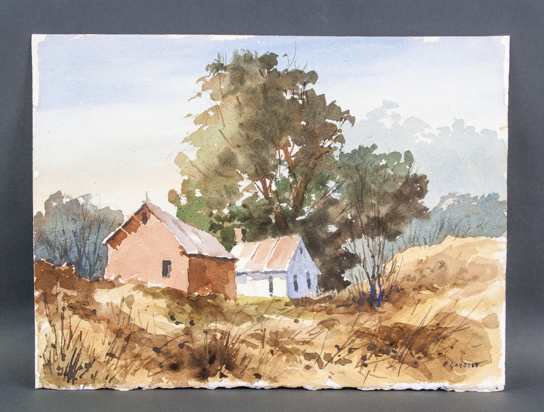 Watercolor on paper. Featuring landscape painting. Signed by Edward Garbely 1908-1999 American on lower right corner. 11.25 x 15 inches (28.6 x 38.1 cm). Edward Garbely was born on August 15, 1908 in Newark, New Jersey. He was best known for his harbor scenes, seascapes, landscapes. He studied at the Newark School of Fine & Industrial Art, including with John R. Grabach, A. H. Trouck, and Alexander Baranowski. He also studied with noted artist Emil Gruppe and NY artist Dorothy Koppelman. He was a member of the New Jersey Society of Painters & Sculptors, the East Orange Art Club, (showing 500 of 1431 characters). PROVENANCE: Private collection, Ohio, United States