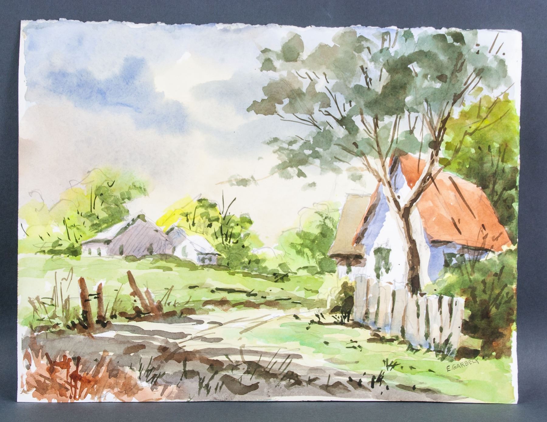 Watercolor on paper. Featuring landscape painting. Signed by Edward Garbely 1908-1999 American on lower right corner. 11.25 x 15 inches (28.6 x 38.1 cm). Edward Garbely was born on August 15, 1908 in Newark, New Jersey. He was best known for his harbor scenes, seascapes, landscapes. He studied at the Newark School of Fine & Industrial Art, including with John R. Grabach, A. H. Trouck, and Alexander Baranowski. He also studied with noted artist Emil Gruppe and NY artist Dorothy Koppelman. He was a member of the New Jersey Society of Painters & Sculptors, the East Orange Art Club, (showing 500 of 1431 characters). PROVENANCE: Private collection, Ohio, United States