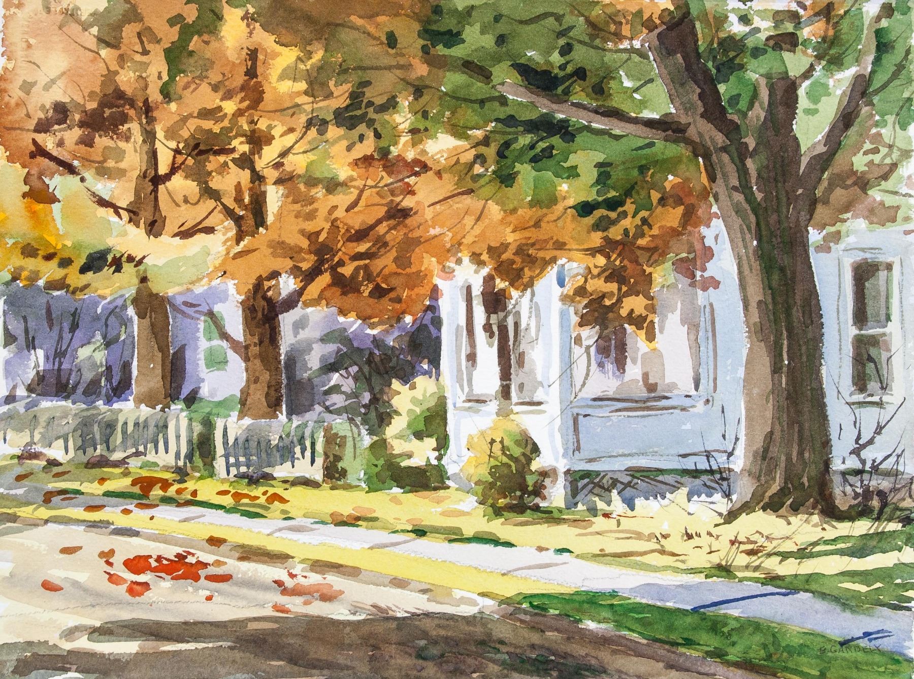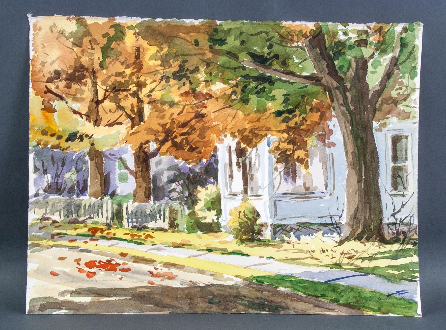 Watercolor on paper. Featuring landscape painting. Signed by Edward Garbely 1908-1999 American on lower right corner. 11.25 x 15 inches (28.6 x 38.1 cm). Edward Garbely was born on August 15, 1908 in Newark, New Jersey. He was best known for his harbor scenes, seascapes, landscapes. He studied at the Newark School of Fine & Industrial Art, including with John R. Grabach, A. H. Trouck, and Alexander Baranowski. He also studied with noted artist Emil Gruppe and NY artist Dorothy Koppelman. He was a member of the New Jersey Society of Painters & Sculptors, the East Orange Art Club, (showing 500 of 1431 characters). PROVENANCE: Private collection, Ohio, United States