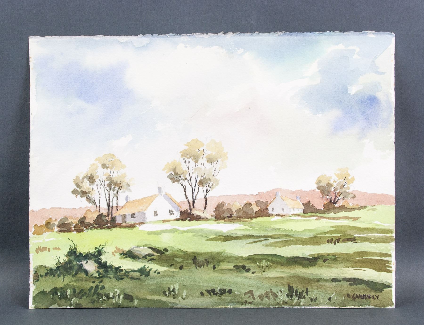 Watercolor on paper. Featuring landscape painting. Signed by Edward Garbely 1908-1999 American on lower right corner. 11.25 x 15 inches (28.6 x 38.1 cm). Edward Garbely was born on August 15, 1908 in Newark, New Jersey. He was best known for his harbor scenes, seascapes, landscapes. He studied at the Newark School of Fine & Industrial Art, including with John R. Grabach, A. H. Trouck, and Alexander Baranowski. He also studied with noted artist Emil Gruppe and NY artist Dorothy Koppelman. He was a member of the New Jersey Society of Painters & Sculptors, the East Orange Art Club, (showing 500 of 1431 characters). PROVENANCE: Private collection, Ohio, United States