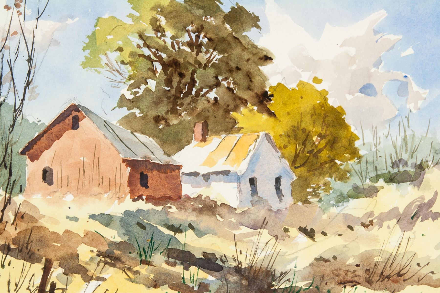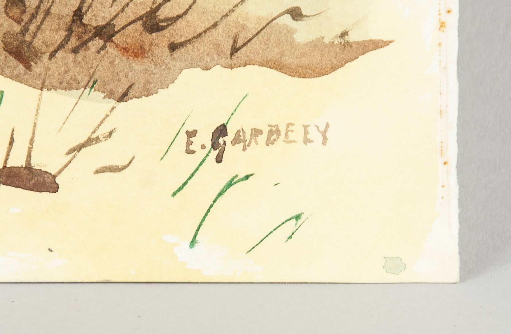 Watercolour on paper painting, featuring two woodshed homes. Signed and attr. Edward Garbely (American, 1908-1999) on bottom left corner. 16 x 11 inch (40.64 x 27.94 cm). Edward Garbely was born on August 15, 1908 in Newark, New Jersey. He was best known for his harbor scenes, seascapes, landscapes. He studied at the Newark School of Fine & Industrial Art, including with John R. Grabach, A. H. Trouck, and Alexander Baranowski. He also studied with noted artist Emil Gruppe and NY artist Dorothy Koppelman. He was a member of the New Jersey Society of Painters & Sculptors, the East Orange Art Club, (showing 500 of 1431 characters). PROVENANCE: Private collection, Ohio, United States