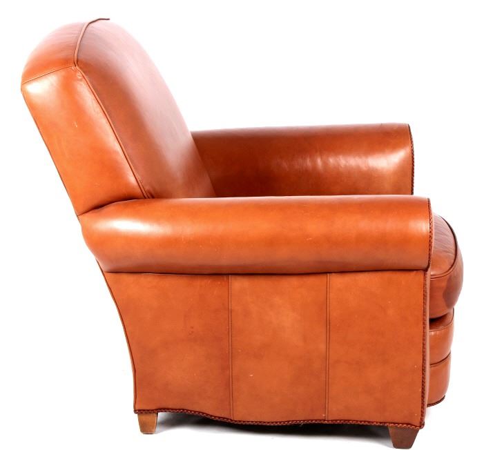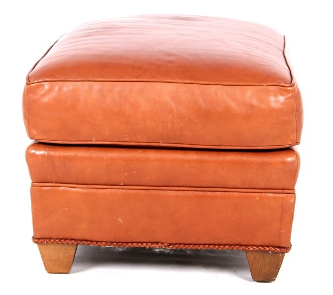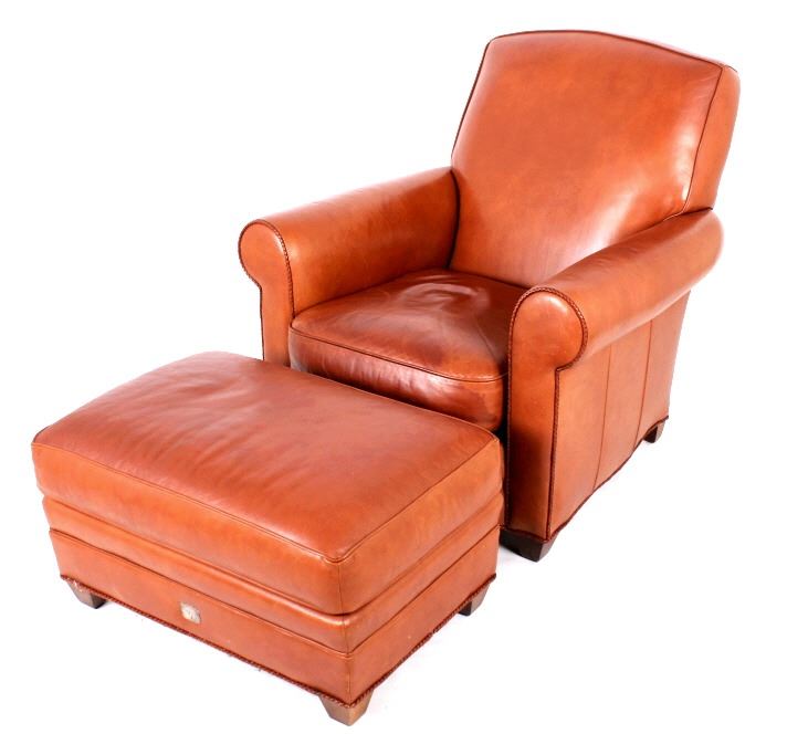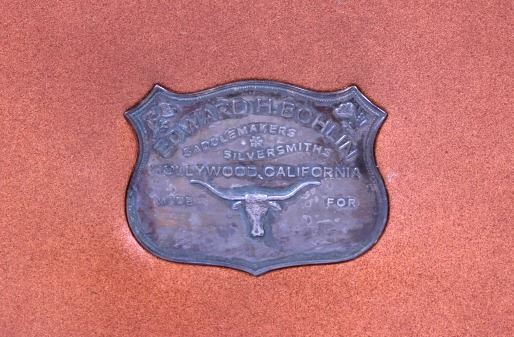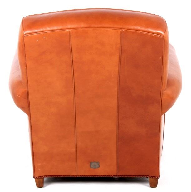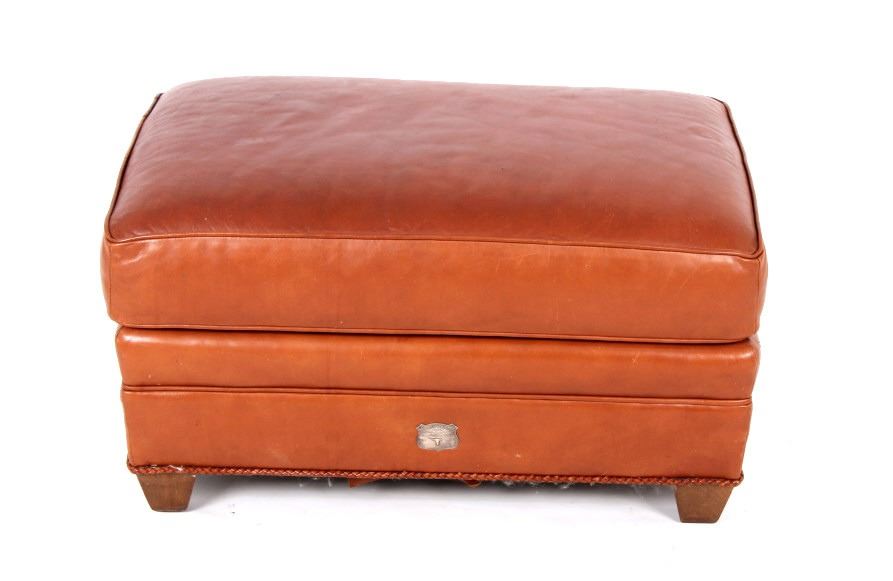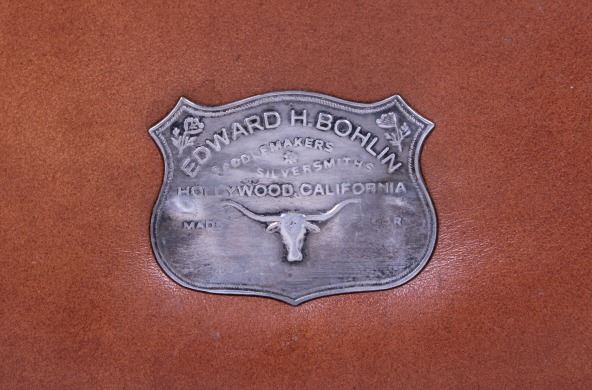 Included for sale in this lot is a custom genuine leather arm chair and ottoman by the renowned Edward H. Bohlin, out of Hollywood, California. Edward Bohlin and his carefully selected team of leather, and silversmiths, were known to craft the world’s finest saddles, and leather tack. Ed was born in Sweden in 1895 and ran away towards America at the young age of 15. Ed had dreams of Buffalo Bill Cody's Wild West in his head, and when he arrived state side, got a job working cattle drives in Montana, later to open his first saddle shop in Cody, Wyoming. Ed would often stand in front of his shop, performing rope tricks to entice cliental. Bohlin met a man named Tom Mix, while performing at the Pantages Theatre in Hollywood - Mix convinced Ed to stay in Hollywood to produce his fine saddles, eventually to serve patrons such as Mae West, Hopalong Cassidy, Monte Hale, Lyndon Johnson, and Ronald Reagan. Under Ed's watchful eye, "The Edward H. Bohlin Company" operated from the early 1920's, through the 1980's, now operating under different ownership. Both the chair and ottoman show silver badges reading "Edward H. Bohlin - Saddle Makers silversmiths - Hollywood, California - made for" and also shows a Texas longhorn. The chair also shows a tag for the leather company "Lee Industries, Inc." and says the names of the individuals who prepared the leather. The piece shows nice brown leather with braided leather as detail pieces. The set is in good condition overall with some slight scuffs and wear. The chair measures 37" tall by 36 1/2" wide with the depth of the seat measuring 24". The ottoman measures 30 1/2" long by 21" wide by 17" tall. Provenance: From the Ladder Ranch & Diamond Bar 7 Brand located just East of Big Timber, Montana near the Montana Crazy Mountains.