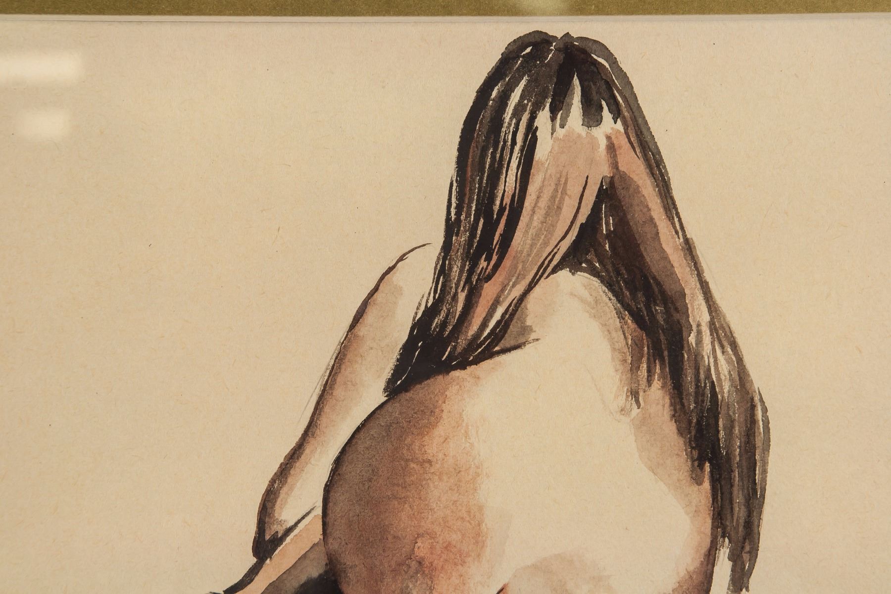 Painting of the back view of nude woman; watercolour on paper; framed; lower right corner signed and attr. Edward Melcarth (American, 1914-1973), painter and sculptor; collector's notes of artist on verso; 7.5 inches 9.5 inches. PROVENANCE: Southern Ontario estate