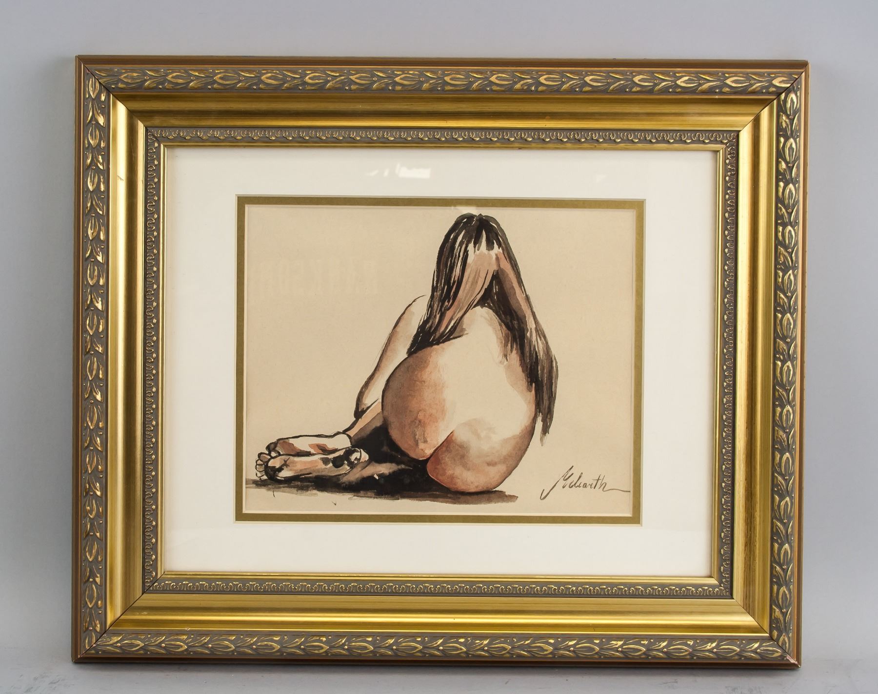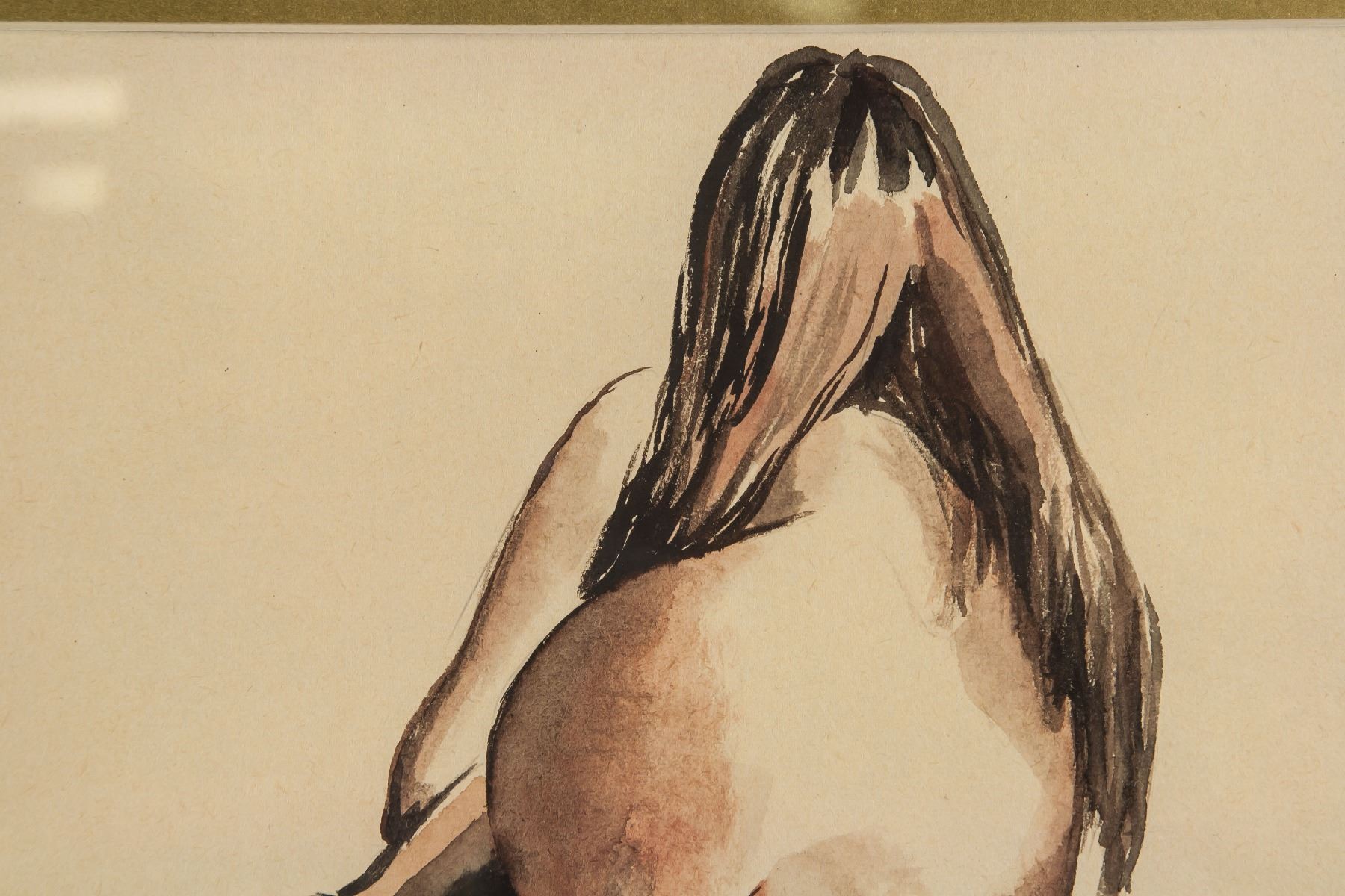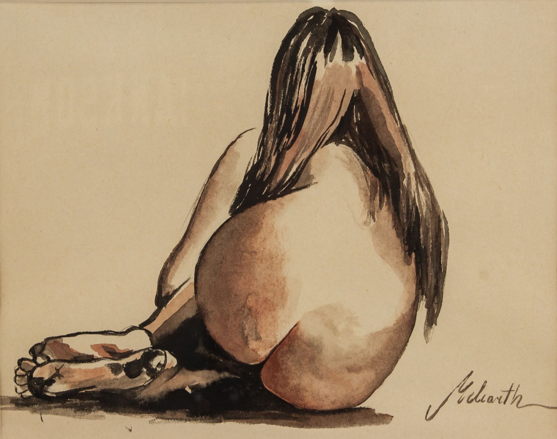 Painting of the back view of nude woman; watercolour on paper; framed; lower right corner signed and attr. Edward Melcarth (American, 1914-1973), painter and sculptor; collector's notes of artist on verso; 7.5 inches 9.5 inches. PROVENANCE: Southern Ontario estate