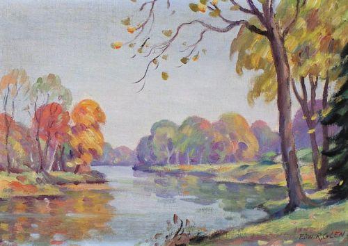UNTITLED; AUTUMN RIVER - Oil on canvas - laid on panel - <Br>10 ins. X 14 ins.