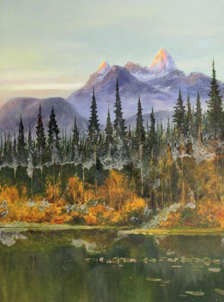 British [1833-1909] MOUNT ASSINIBOINE, THE CANADIAN MATTERHORN (FROM MARVEL LAKE) oil on board 26.5 x 20 in. (67.3 x 50.8 cm) signed Note: Roper, although British, travelled extensively and periodically lived in both Canada and Australia.