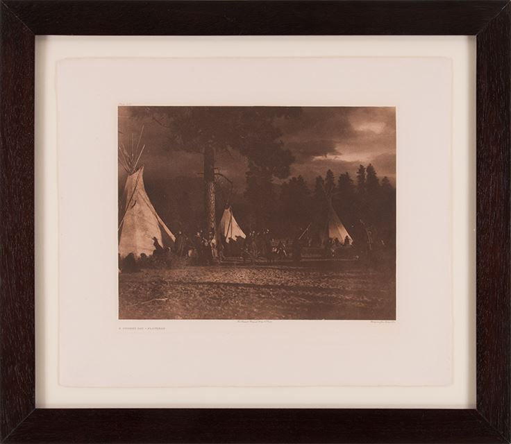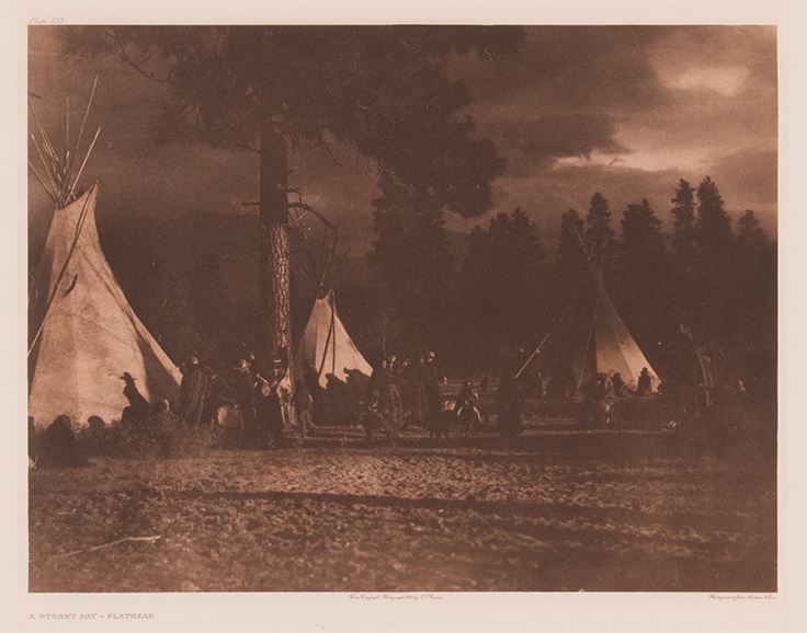 Edward S. Curtis (1868-1952). A Stormy Day-Flathead. 11 ¾" x 15 ½" photogravure printed on Holland Van Gelder paper with a watermark. Plate 233 upper left. hotogravure John Andrew V Lon lower right. Titled lower left.