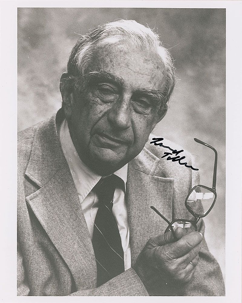 Glossy 8 x 10 photo of Teller holding his glasses, signed in black felt tip. In fine condition.