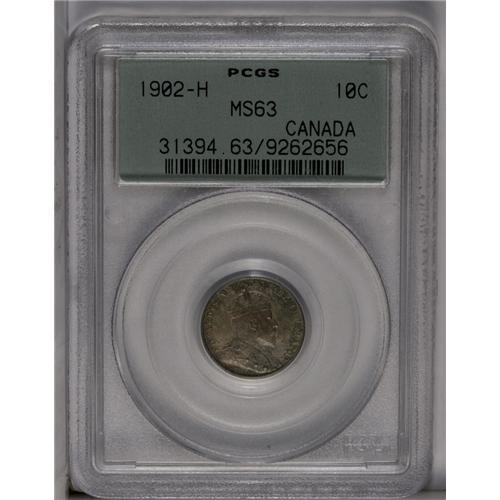 Edward VII 10 Cents 1902H, KM10, MS63 PCGS, light color