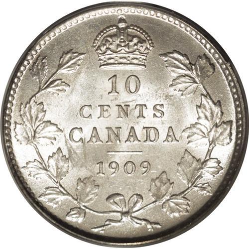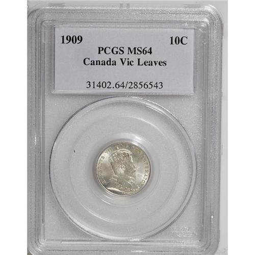 <B>Edward VII 10 Cents 1909 Victorian Leaves, </B></I>KM10, MS64 PCGS, a virtually untoned coin with full flashy mint brilliance. Very scarce in this superior quality, only one example has been graded higher by PCGS, MS65.<BR><I>From the Dominion Collection.</B></I>