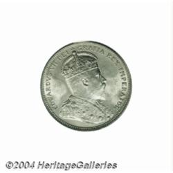 Edward VII 25 cent 1902H, KM11, MS64 PCGS. Important notice: Heritage usually auctions material at the rate of 200-250 lots per hour. On some occasions eBay Live bid software or the Internet may not be able to keep up with the pace of the auction. We recommend placing a realistic absentee bid now as insurance to avoid disappointment. Occasionally the auctioneer may eliminate or reject an eBay Live bid, and the auctioneer may also reopen a lot after the close of the eBay live bidding (usually because we missed an audience bid), and may reject your bid even if it shows you as the winning bidder. By bidding via eBay Live, you agree that Heritage may award the lot to another bidder at its sole discretion under the circumstances described above or any other reasonable circumstances. Also please note that all Heritage lots purchased through eBay Live carry a 20% Buyer's Premium. Please make sure you read the Terms and Conditions before you bid.