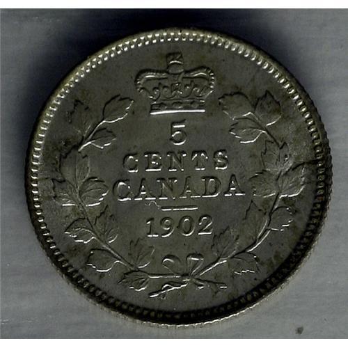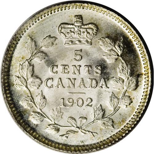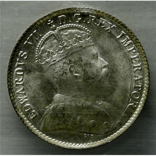 <B>Edward VII 5 Cents 1902,</B></I> KM9, MS67 ICCS. Frosty-white brilliance with pristine surfaces and a normal strike for this first-year Edward issue. As one might expect, Mint State examples of this issue are plentiful, but Superb pieces, such as this, are rare, and none have been certified finer by ICCS.<BR><I>From the Wellington Collection..</B></I>