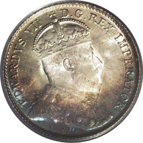 Edward VII 5 Cents 1902, KM9, MS67 PCGS. A second Super