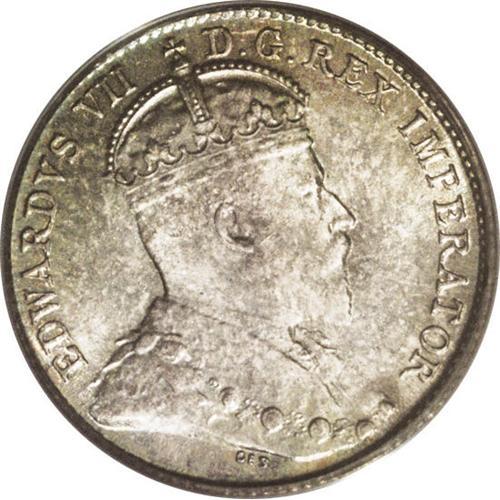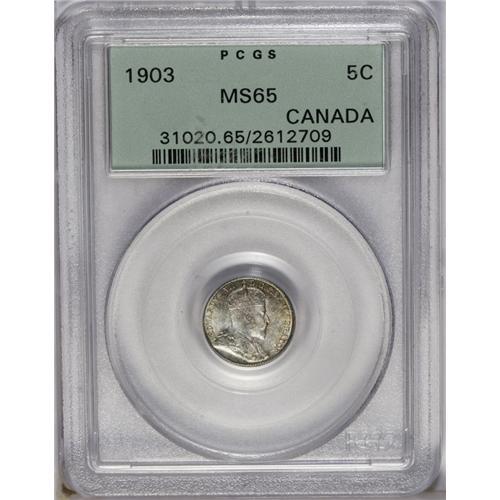 <B>Edward VII 5 Cents 1903,</B></I> KM13, MS65 PCGS. Well struck with steel-gray toning and golden highlights.<BR><I>From the Dominion Collection.</B></I>