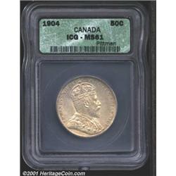Edward VII 50 cents 1904, Crowned bust right/Crowned date and value in wreath, KM-12, MS61 ICG.<p>Light golden toning with full strike and luster. A very rare issue with a low mintage of only 60,000 pieces.From the Peter Martinez Collection. Important notice: We expect to be auctioning lots at the rate of 200-250 per hour. Sometimes eBay Premier live bid software cannot keep up with that pace, so we strongly recommend that you place a realistic proxy bid now as insurance to avoid disappointment. Also please note that all Heritage/CAA lots purchased through eBay Premier carry a 20% Buyer's Premium.