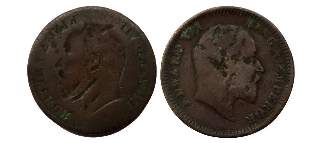 Edward VII, Copper ¼ Anna, Error, Brockage, nice deep and complete lakhi impression within dotted bo